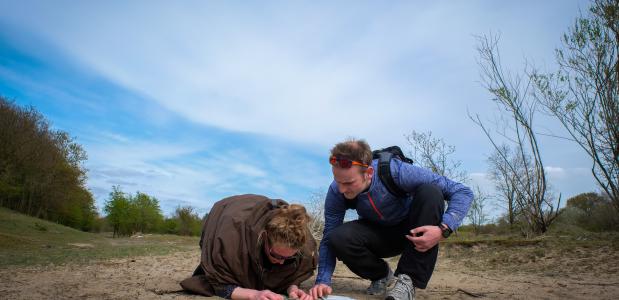 Uitgerust met drie verschillende kompassen, een stafkaart en een recreatiekaart, een gouden legging, een fotograaf en het vriendinnetje van de fotograaf - mijn zusje - gingen we met zijn vieren op pad. Ik moest ons via een klein weggetje naar een door Jeroen aangewezen punt op te kaart zien te leiden. Al vrij snel was ik vergeten welk punt hij precies had aangewezen en bleek ik bovendien een klein weggetje te vroeg zijn ingeslagen...