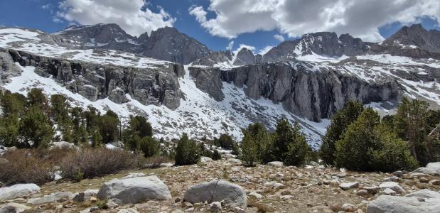 Even later liep ik langs de splitsing richting Mount Whitney. Alhoewel sommige PCT'ers deze berg van 4421 meter op lopen, was dat niet iets voor mij. Omdat ik de vorige keer een lichte vorm van hoogteziekte had opgelopen, wist ik niet of een beklimming van Mount Whitney het risico hierop waard was. Ik was de bergen nog niet uit, dus ik wilde me liever fit dan ziek voelen. Daarnaast zou ik genoeg hoge passen met prachtige uitzichten over moeten, waardoor ik de PCT al mooi en indrukwekkend genoeg vond. Zo klom ik vandaag van het ene mooie uitzicht naar het andere en keek ik na elke klim weer uit over nieuwe besneeuwde pieken.