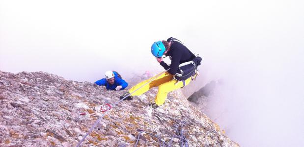 We ontwaken op een bed van wolken. Het dal onder ons is geheel verdwenen, Montserrat (Spanje) steekt er als een eiland fier boven uit. Vandaag gaan we de meest klassieke en excentrieke lijn van het gebied beklimmen, Punsola-Reniu. Een imposante pijler van 220 meter. Boven ons een helder blauwe hemel, heerlijk fris. Tijdens de aanloop naar de pijler hullen de opkomende wolken vanuit het dal ons in een dikke mist, af en toe onderbroken waardoor we een glimp van onze route te zien krijgen.