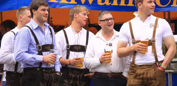 Het feest kan niet op. De zon schijnt, het is warm en de twee Jungs op het podium voeren de temperatuur nog verder op. De massa gaat helemaal uit haar dak. Mannen gaan op de banken vervaarlijk staan heupdansen. Ze trekken hun T-shirts uit. Iedereen brult het ‘Fliegerlied’ en doet de choreografie min of meer gecoördineerd mee. Ik volg. Gezien nu alle ledematen meedansen wordt er onvermijdelijk bier gemorst.
