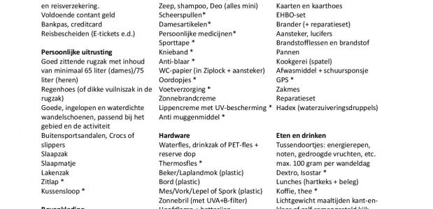 In de bijlagen twee voorbeeldpaklijsten; één voor een huttentrektocht, één voor een kampeertrektocht. Doe er je voordeel mee. Wie goed voorbereid op reis gaat, heeft een leukere vakantie!