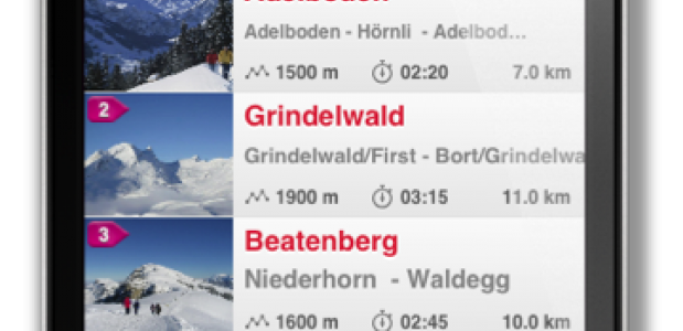 De ‘Swiss Winter Hike’ app geeft 36 van deze routes tot in detail aan. Naast positionering en tijdsduur geeft de app ook informatie over de moeilijkheidsgraad van de wandeling, het hoogteprofiel en de bereikbaarheid. Zwitserland Toerisme heeft naast de wandel-app ook een ski-app ontwikkeld, met informatie over sneeuwhoogte, weersvoorspellingen, geopende liften en pistes.