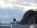 Het dak is 180 meter lang en 14 meter breed. Het heeft een energieproductie gelijk aan het jaarlijkse verbruik van 70 gezinnen. Naast het station beschikt het "Centre del món" over een complex van drie verdiepingen met handelszaken en kantoren.
