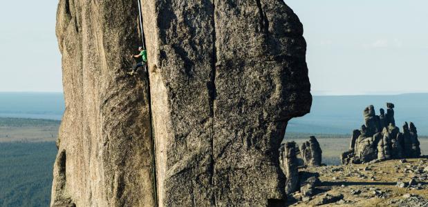 Fishuber, een van de meest succesvolle boulderaars van dit moment, kon de pilaren bedwingen. Maar dat ging niet vanzelf. Alleen al de tocht naar de rotsen toe was een uitdaging op zich. Het dichtstbijzijnde vliegveld Belaya Gora ligt honderden kilomters verderop. Vanaf het vliegveld moest het expeditieteam eerst nog honderden kilometers met de boot afleggen om vervolgens nog een aantal dagen te voet verder te gaan.