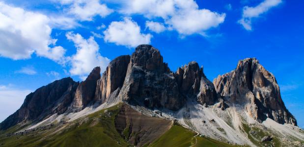 Op het punt waar de drie Italiaanse provincies Bolzano, Trente en Belluno bij elkaar komen, ligt de Sellagroep. Een berggebied dat niet zozeer bekend staat omdat je er omhoog kan klimmen of doorheen kan wandelen, maar omdat je er omheen kan. De Sellaronda is een bekende skitocht, maar is ook voor wandelaars en mountainbikers een stevige uitdaging!
