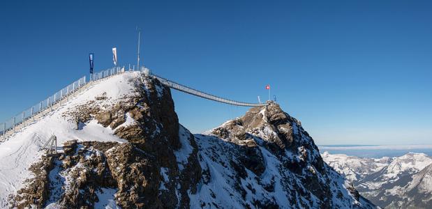 De nieuwe hangbrug ligt in het gletsjergebied Glacier3000, vlakbij Les Diablerets en Gstaad. De 107 meter lange hangbrug ligt op een hoogte van 2971 meter en is uniek in de wereld. De brug loopt van de piek Vorgipfel (View Point) naar de Scex Rouge. Vanaf die top heb je een uitzicht op de Tsanfleuron-gletsjer. Onderweg heb je uitzicht op de hoogste toppen van de Alpen, zoals de Mont Blanc, Jungfrau en de Matterhorn. Voor dat uitzicht moeten de bezoekers wel stalen zenuwen hebben. De brug biedt niet alleen een uitzicht op Europa’s hoogste bergen, door de glazen vloer kijk je zo het diepe dal in.