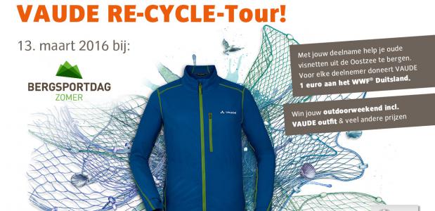 Ga je zondag 13 maart naar de NKBV bergsportdag? Dan kun je meedoen met de Vaude Re-Cycle Tour. Een spel waarbij je leuke prijzen kan winnen, zoals een actief outdoor-weekend, een complete VAUDE-outfit of een VAUDE reis-trolley. Je kan ook online meedoen aan de Re-Cycle Tour, die vanaf half maart door Nederland, België en Duitsland tourt.