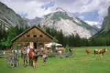 Het Karwendelmassief heeft een oorspronkelijker en wilder karakter dan de omliggende bergketens. Grootse en kale kalkwanden en lieflijke groene velden, de almen, wisselen elkaar af en leveren schitterende uitzichten op. Niet voor niets lopen de Via Alpina, de Adlerweg en de lange afstandswandeling München – Venetië door het massief.