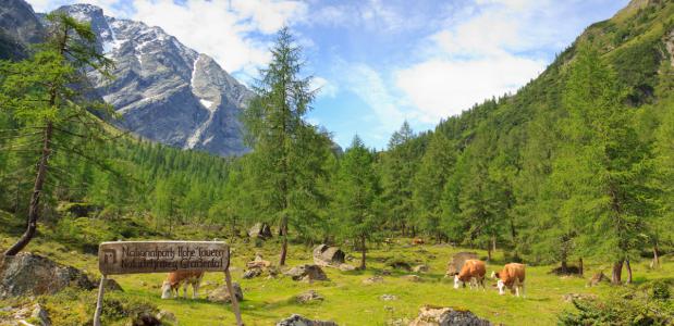 Onze uitgekozen wandeling voert ons door het Gradental naar de Adolf Noβberger Hutte (2488m). Vanaf de parkeerplaats is de wandeling in twee stukken op te delen. Het eerste deel gaat voor een groot deel door een mooi naaldbos waar de koeien vrij rond lopen. Een mooi niet al te stijl pad brengt je naar een plateau (Gradenmoos) dat is ontstaan door het instorten van een bergtop. Op dit plateau leeft nu de grootste diversiteit aan reptielen van het gehele NationalePark Hohe Tauern.