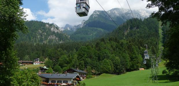 De volgende dag staat de tocht naar de Wasseralm op het programma. Het eerste deel gaat het gemoedelijk door een bos. Vervolgens lopen we over een smal pad langs de Laafeldwand en gaan we via de Landtalsteig onderlangs de Hanauerlaubwand. Een ketting helpt ons bij het passeren van een lastige passage. De kinderen vinden het leuk en doen het uitstekend. Ze volgen de aanwijzingen, die ik geef, nauwkeurig op en gaan veilig en “trittsicher” over deze passage. Vandaar hebben we een mooi uitzicht op de Obersee en de Königssee.