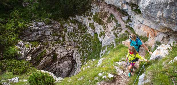 Start & route: Vanuit Andalo of Fai della Paganella met lift naar de top van de Paganella (achter hut La Roda), borden “Sentiero delle Aquile” volgen. Het eerste deel is met staalkabels uitgerust en is geschikt voor kinderen v.a. 6 jaar met bergwandelervaring. Bij twijfel vanaf de top padnummer 602 nemen en het 2e deel van de Sentiero delle Aquile volgen en terug via de Sentiero Botanico.