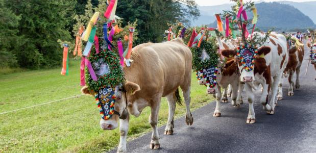 Wanneer de zomer ten einde komt en het najaar begint, is het tijd voor de Almabtrieb, een typische traditie in de Alpen. Op straat hoor je mensen, klassieke koebellen, licht gejodel, hoeven en ook wat geloei van de koeien. De Almabtrieb is een jaarlijkse traditie waarbij boeren de koeien, schapen en de rest van het vee van de almen terug naar het dal brengen. Dit oude ritueel vindt plaats in Zwitserland, Oostenrijk en Duitsland. Elk jaar in september en oktober worden de koeien versierd met bloemen, slingers en natuurlijk de koebellen, voordat ze te voet naar het dal gaan. Hoe uitbundiger de versieringen, hoe groter het feest wordt.