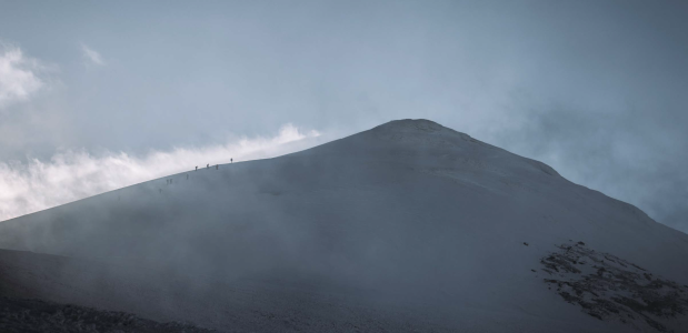 Helaas zal ik niet samen met Asle op de top van de Ararat staan, want anderhalve dag later haast ze zich met twee deelnemers naar beneden. Onderweg naar kamp twee, op 4200 meter, beginnen ze symptomen van hoogteziekte te ontwikkelen en dan zit er maar één ding op: afdalen. De rest van de groep dwaalt wat rusteloos door het kamp, dat aanvoelt als een minuscule samenleving op de maan. Felgekleurde tentjes zijn tegen de zwarte bergwand aangeplakt en een hardnekkige wolkenlaag ontneemt ons het zicht op de rest van de wereld. Al snel vlucht iedereen zijn warme slaapzak in, verlangend naar een paar uurtjes slaap voordat we om half twee ’s nachts aan onze toppoging zullen beginnen.