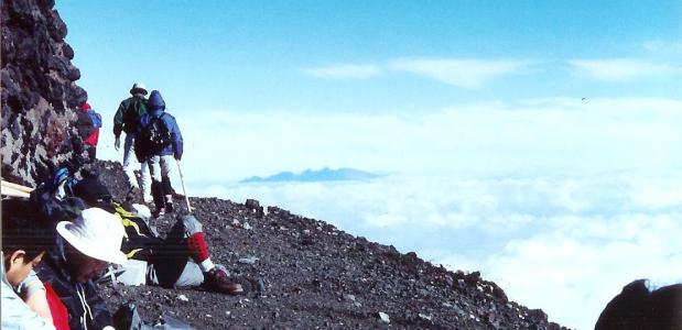 Van die laatste uren naar de top kan ik me niets meer herinneren. Zelfs de zonsopgang, die ik vanaf de helling moest aanschouwen, is in mijn geheugen verdwenen. Een paar foto’s van mijzelf bij de krater, een T-shirt en een speldje zijn de enige bewijzen van het volbrengen van deze uitputtingsslag. Ik heb er bijna tien uur over gedaan. De afdaling duurde nog eens vier uur. Mijn handen en gezicht waren verbrand in de korte tijd dat ik op de top was. Ik was duizelig en misselijk, maar ook onmetelijk trots en voldaan. Zo onoverwinnelijk als toen heb ik me nooit meer gevoeld en ik begrijp nu de betekenis van de veelgehoorde uitdrukking “Als je in Japan bent en de Fuji niet beklimt, ben je gek. Als je het meer dan eens doet, ben je ook gek”.