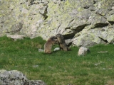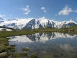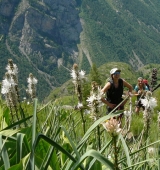 We doorkruisen verlaten gehuchten en passeren moestuintjes, schaapskooien, ruïnes en turkooizen warmwaterbronnen. Marmotten stoeien en poedelen in de verte en dichtbij. Gemzen kijken op ons neer, roofvogels cirkelen boven onze rood aangelopen gezichten, marters schieten schichtig weg. We beluisteren de concerten met rinkelende bellen van koeien, loom gelegen tegen berghellingen.