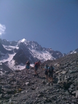 Gekozen is dit keer voor een bestaande route door het bergmassief van Les Ecrins in de Franse Oisans. Op de eerste avond - aan een picknicktafel met uitzicht op besneeuwde bergtoppen en ver beneden het stuwmeer glinsterend in de avondzon - heerst er een gezonde spanning. Voorafgaand aan de reis waren er drie kennismakingstochten en er was e-mailcontact, maar eenmaal op de plaats van bestemming moet iedereen toch aan elkaar wennen. Er is onzekerheid over het eigen kunnen. Over de zwaarte van de tocht. Over de beruchte slaapzalen vol snurkers. Maar nieuwsgierigheid en zin om te wandelen overheersen.
