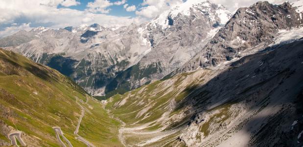 Op nummer drie staat de Passo Stelvio in Italië met een hoogte van 2758 meter. Deze bergpas is 24,3 kilometer lang een heeft veel smalle bochten die moeilijk zijn te bereiden, echter is wel de gehele weg van asfalt. De Stelvio is een van de grootste uitdagingen in de wielersport, door de lengte, hoogte en de 48 haarspeldbochten. Deze bergpas is te doen met de fiets, motor, auto en lopend. Af en toe moet er wel rekening gehouden worden met de smalle stukken.