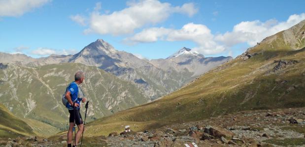 De volgende dag is het weer vroeg op, voor de zevende etappe: van St. Valentin naar Sulden, bij de Ortler, 42,6 kilometer, met 2.380 m omhoog en 1.930 m afdalen. Het is bewolkt bij de start, maar droog. In de eerste 29 kilometer zijn er wat kleine klimmetjes, maar is het verder vooral afdalen. Na 29 kilometer gaat het echter steil omhoog: 1.600 m in ongeveer 7 kilometer. Op de Tabarettascharte (2.880 m) kunnen we het dal van Sulden inkijken. Na een smal paadje (inhalen verboden) gaat het omlaag naar de finish in Sulden.