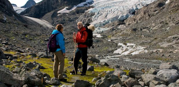 Wie van wandelen houdt, zit goed in de regio Jotunheimen. Maar wie van spektakel houdt, beklimt de hoogste berg in Noorwegen en Scandinavië (2469 meter hoog) en gaat voor een spectaculaire gletsjerwandeling. De klim laat zich het eenvoudigst beginnen vanaf Juvasshytta, dit is de snelste en kortste route naar de top. Wie het zichzelf moeilijk wil maken en de langste route naar de top kiest, start bij de Spiterstulen aan de oostzijde. Deze route is technisch niet zwaar, vooral de lengte van de tocht maakt het een uitdaging! De route zelf is goed en duidelijk gemarkeerd.Geniet van de prachtige uitzichten onderweg, stop vooral even voor een slok uit het kristalheldere bergwater dat naar beneden komt via een van de vele bergriviertjes. Halverwege de top bevindt zich de eerste sneeuw. Vanaf hier is het genieten van het uitzicht op de gletsjers, de stilte en de omgeving. Eenmaal aan de top zie je hoe populair Galdhøpiggen is, iedereen wil dit uitzicht op de gevoelige plaat vastleggen.