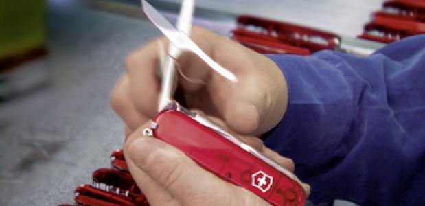 Ik krijg een rondleiding door de fabriek en ga ervaren hoe het bekende Zwitserse zakmes gemaakt wordt. Dat is bijzonder, want de fabriek van Victorinox is niet open voor publiek. Victorinox is altijd gevestigd geweest in Schwyz. Zowel het woonhuis (en eerste fabriek) van oprichter Karl Elsener uit 1884 als het tweede fabriekspand zijn nog in handen van Victorinox. En staan op een steenworp afstand van de huidige fabriek die in de jaren ’30 in gebruik genomen werd. In deze fabriek worden de zakmessen en de keukenmessen gemaakt. Elders worden nog horloges, reiskoffers en kleding geproduceerd
