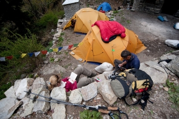 Je zou er in Nederland al rekening mee kunnen houden dat je wat spullen weg wilt geven door niet alleen je nieuwste spullen mee te nemen, maar ook een paar dingen die je niet vaak meer draagt/gebruikt (maar die nog wel waardevol zijn). Heel hoog scoren hoofdlampen (met reservelampjes), telescoopstokken, bergwandelschoenen, slaapmatten (gewone van celschuim ook), regenjacks en trekkingbroeken. Maar sokken, T-shirts en al het andere bruikbare ook. Zelfs stevige plastic bakjes of potjes (de kok!). Tegenwoordig spreken steeds meer Nepalezen een woordje Engels, al moet je in het begin waarschijnlijk flink wennen aan hun uitspraak en woordkeuze. Voor mij is de communicatie met de Nepalezen een grote drijfveer om voor een tententrektocht inclusief sirdar, dragers en kok te kiezen. Ik heb daardoor al veel extra avonturen beleefd die anders niet mogelijk geweest waren. Het grote nadeel van een lodgetrekking vind ik dat je nauwelijks contact met de Nepalezen hebt en juist meer met trekkers.