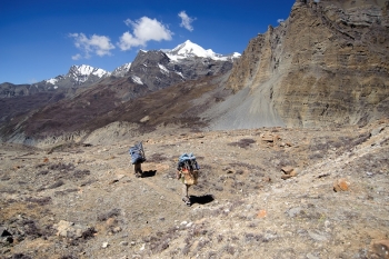 Nepal is een klein land, dat groot is in hoge bergen. Nepal ligt midden in het Himalayagebergte. 8 van de 14 achtduizenders liggen geheel of gedeeltelijk op Nepalese bodem. Uiteraard ook de hoogste berg ter wereld: de Mount Everest (8848 m). Zelf heb ik 13 trektochten in Nepal gemaakt, waaronder een tocht naar de Tibetaanse dorpen Phu en Nar. Wil je zelf een trekking in Nepal doen, dan vind je hier informatie en nuttige tips die ik in al mijn reizen vergaard heb. Auteur Robert EckhardtVoorjaar of najaarIn de literatuur lees je vaak dat het weer in het najaar beter is dan in het voorjaar. Mijn ervaring na 13 trektochten in Nepal (7 voorjaar / 6 najaar) is dat het niet veel uitmaakt. Voordeel van het voorjaar: er zijn minder trekkers dan in najaar. Een ander voordeel is dat de dagen veel langer zijn. Een voordeel van het najaar is dat de kans op heldere hemel met eindeloze vergezichten groter is. Stijgen/dalen/tijdHoe groot het hoogteverschil per dag is bij een trektocht in Nepal is niet altijd te zeggen, want het is in Nepal vrijwel nergens vlak. Óf je stijgt óf je daalt; Nepali flat heet dat. Vaak kun je wel het hoogste en het laagste punt aangeven, maar niet wat de hoogteverschillen daar tussenin zijn. Je loopt tussen de 4 en 7 uur (effectieve looptijd) per dag. Je kunt de dagindeling soms aanpassen aan de wensen van de deelnemers, maar alleen als je een zogeheten ‘private party’ bent. Oftewel je eigen groepje hebt samengesteld en niet met een groepsreis gaat. Een private party heeft veel voordelen: je kunt de dagetappes onderweg aanpassen (langere of kortere etappes) en meebeslissen waar je overnacht. Bij een groepsreis bepaalt de sirdar de dagetappes, bij een private party kun je daarover met de sirdar overleggen, maar de sirdar bepaalt uiteindelijk wat er gebeurt, omdat hij de verantwoordelijkheid voor de groep heeft. ZwaarteIedere dag bergop en bergaf, op bergpaden die variëren van makkelijk tot pittig, is zwaar. Tel daar de hoogte bij op en je zult begrijpen dat je in goede conditie aan de start moet verschijnen. Hoe beter getraind, hoe makkelijker je het zult hebben. Als je een tententrektocht maakt, hoef je, op het lopen, eten en drinken na, niets te doen: de Nepalezen verzorgen alles. Ga je zelfstandig en sjouw je je eigen rugzak, dan verzwaar je de tocht. Je moet dan immers ook zelf onderdak zoeken, het traject bepalen etc.