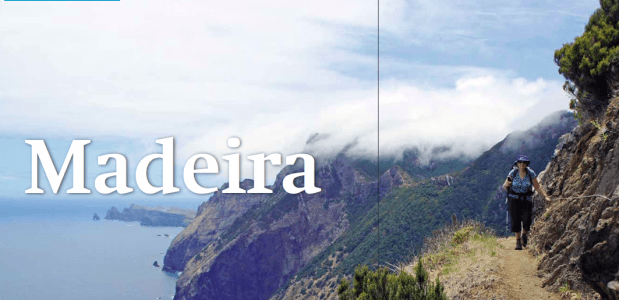 Madeira ligt ongeveer 900 kilometer ten zuidwesten van het Europese vasteland en 500 kilometer ten noorden van de Canarische eilanden. Van oost naar west meet het 57 kilometer; van noord naar zuid 22 kilometer. Het eiland heeft bergen (Pico de Ruivo is met 1861 m de hoogste) en steile kusten. Het is door zijn mooie natuur en milde klimaat een wandeleiland par excellence. Je vindt er weelderige bossen en prachtige bloemen, maar ook ruige bergruggen met vulkanische landschapsvormen. Madeira kent makkelijke maar vaak ook spectaculaire wandelingen langs de levada's, de bijna vlak lopende irrigatiekanalen die over het hele eiland verspreid liggen. Deze paden zijn waar nodig beveiligd door ijzeren balustrades want op sommige trajecten heb je erg veel lucht onder je zolen.