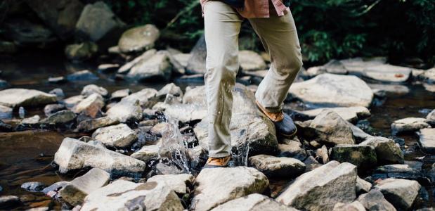Bij een evenwichtsoefening denk je misschien al snel aan op één been staan. Natuurlijk klopt dat, je balanceert op zo’n moment, maar stil staan op één been is natuurlijk niet representatief voor de beweging die je tijdens een wandeling maakt. Dat wordt al meer als je vooraf een paar keer op de plaats een stapbeweging maakt: stap drie keer op de plaats en til daarbij je kniëen hoog op. Bij de laatste stap til je je been dat van de grond komt hoog op, zodat je je knie in een hoek van negentig graden houdt. Blijf zo drie tellen staan en herhaal vanuit die houding de oefening zodat nu je andere been als laatste van de grond komt. Eitje? Mooi, hou dan je been eens vijf seconden in de lucht.