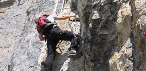 Jarenlang heb ik klettersteigen gekwalificeerd als ‘spielerij’, om maar eens een goed Nederlands woord te gebruiken. Maar ondertussen ben ik al een paar jaar om. Dat heeft er mee te maken dat er in razend tempo uitdagende klettersteigs bijkomen in de Alpen en anderzijds dat het in een ‘verloren uurtje’ mogelijk is een klettersteig te klimmen. Dat laatste is dan weer makkelijker te combineren met het gezinsleven tijdens de vakantie. Lang leven de speeltuin die Alpen heet…